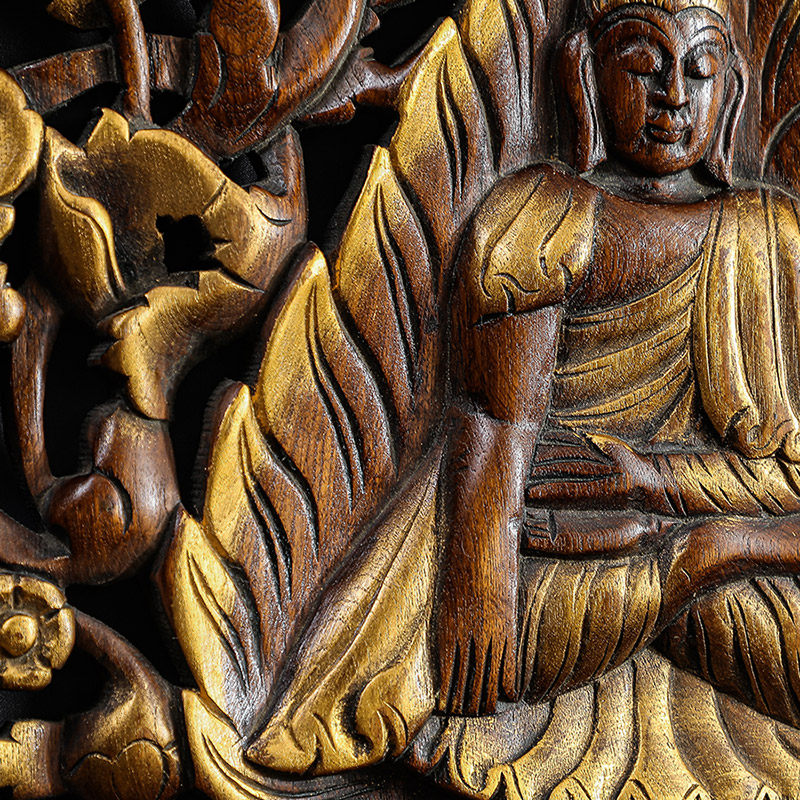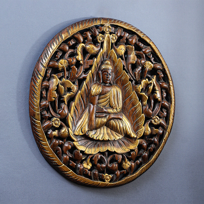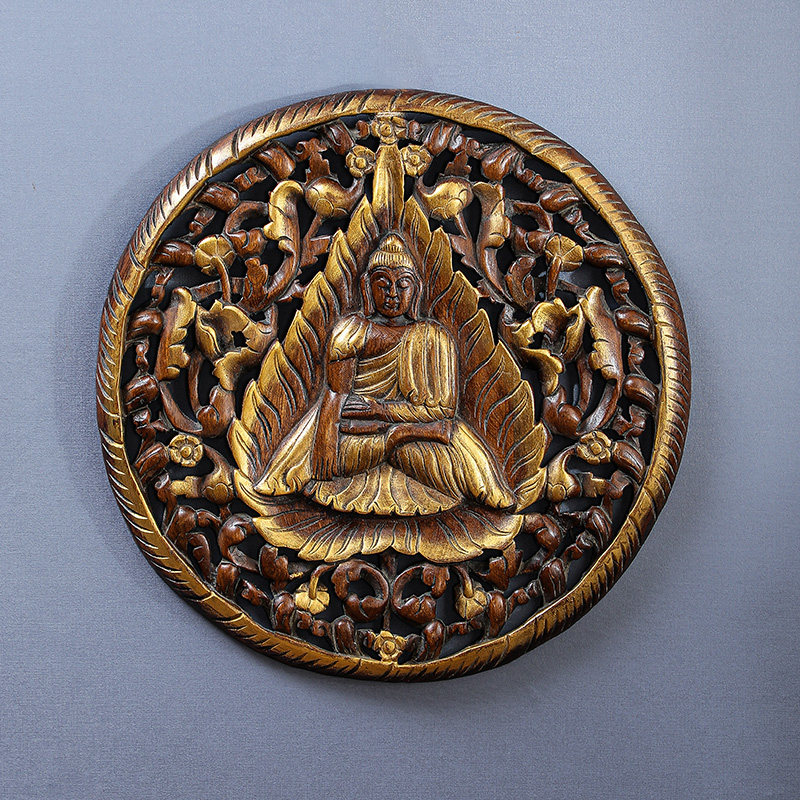 泰国雕刻工艺品东阳木雕花格佛壁挂墙饰客厅玄关背景墙装饰挂件
