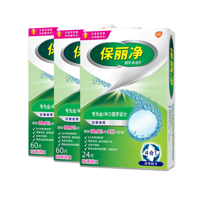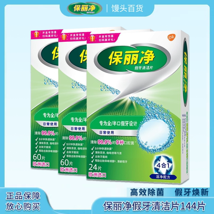 中美史克保丽净半口全口假牙清洁片清洁剂144片 正品包邮