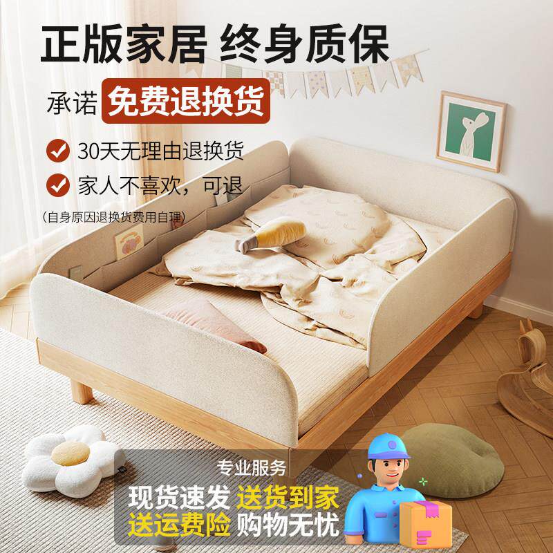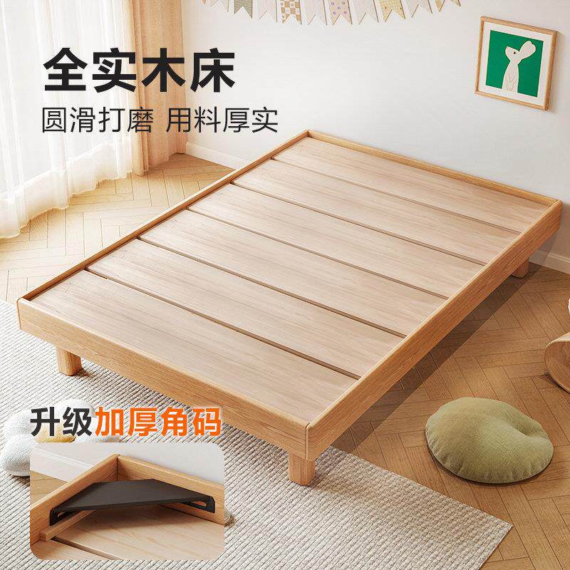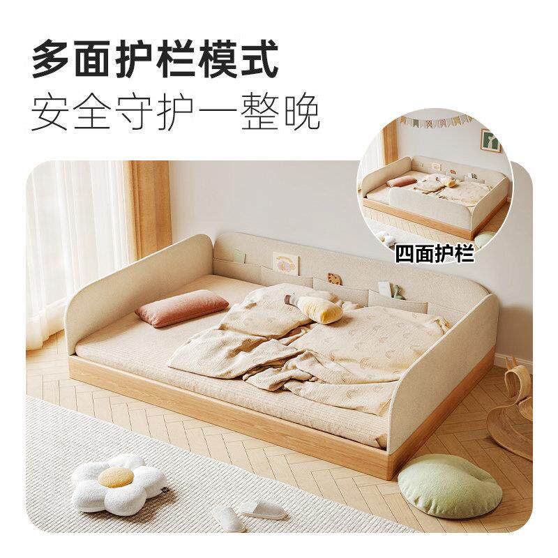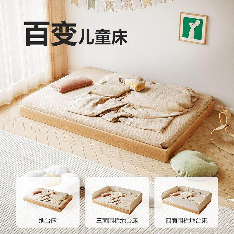 儿童床全实木带围栏地板床地台床蒙氏儿童床男孩女孩无床头单人床