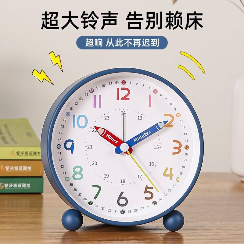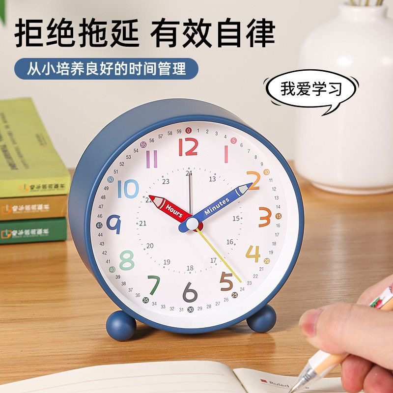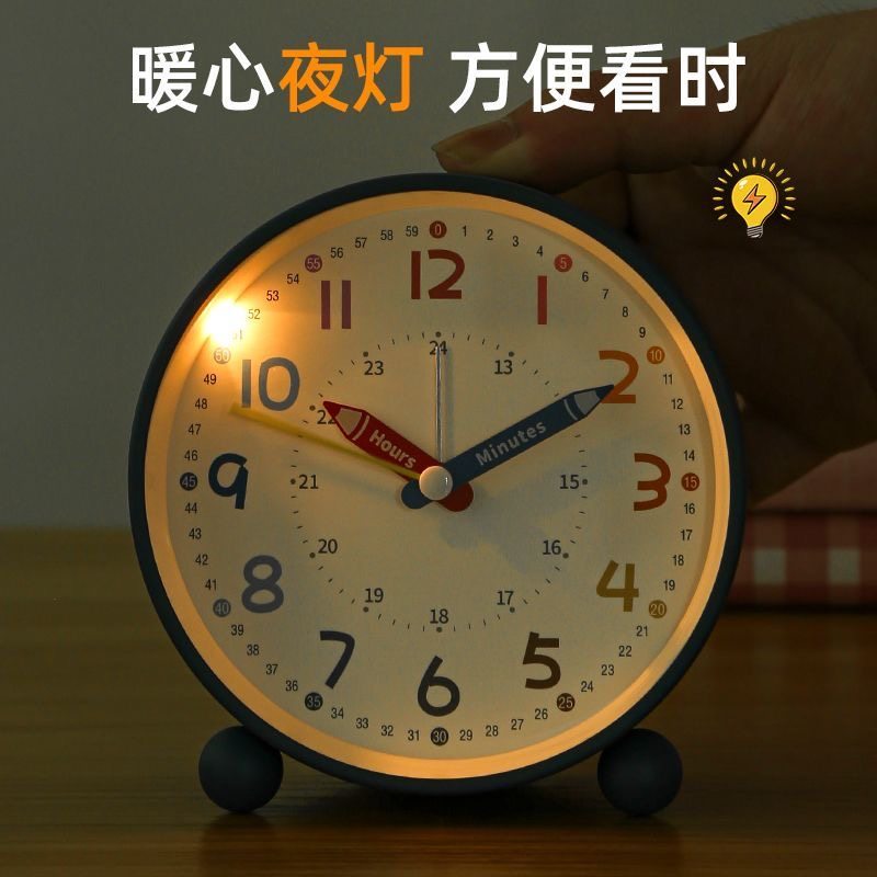 新款铅笔学生可充电闹钟儿童幼儿园教学钟静音带夜灯早教表桌面钟