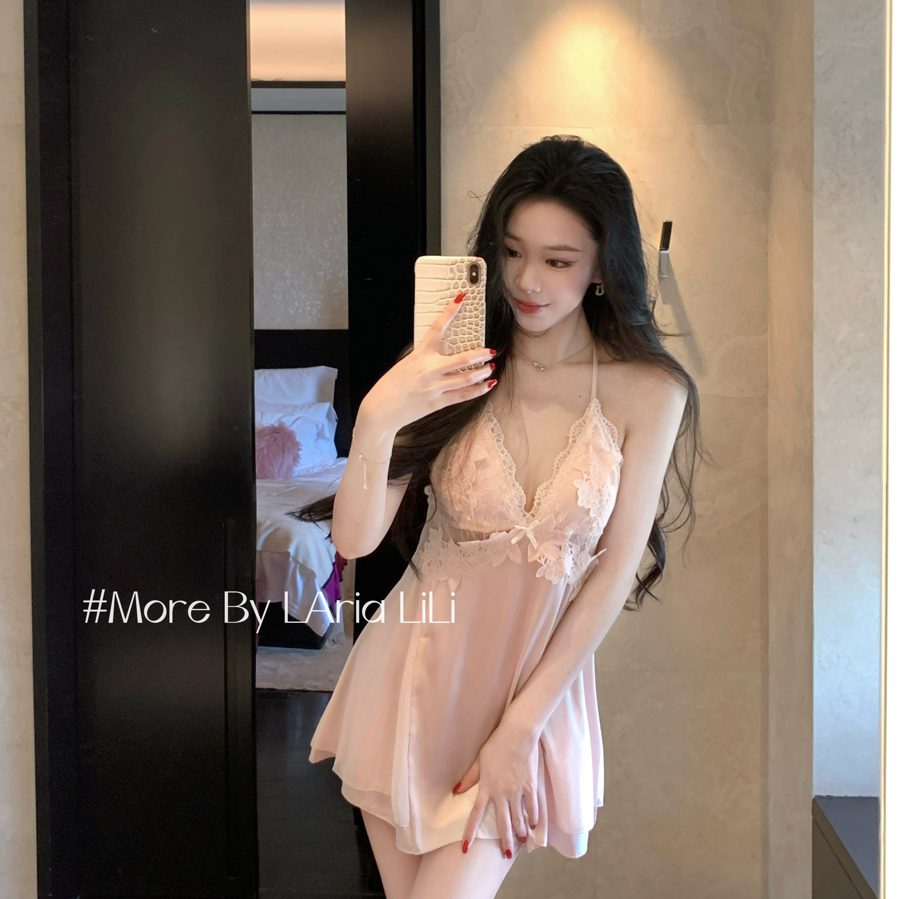 LAria蔷薇预谋 冰丝性感睡裙2025新夏纯欲蕾丝吊带睡衣女家居服
