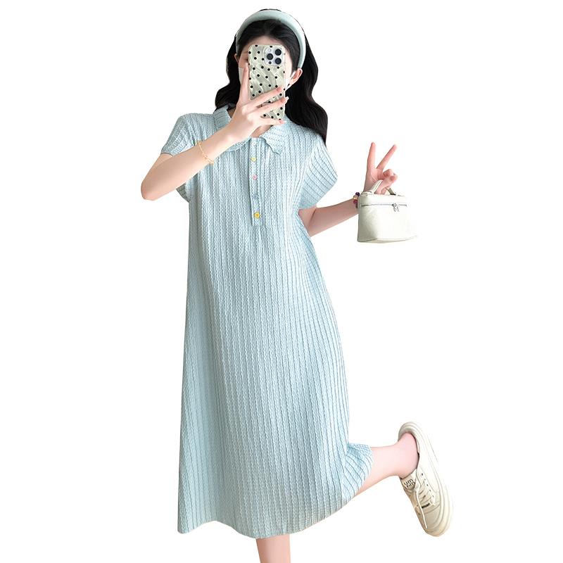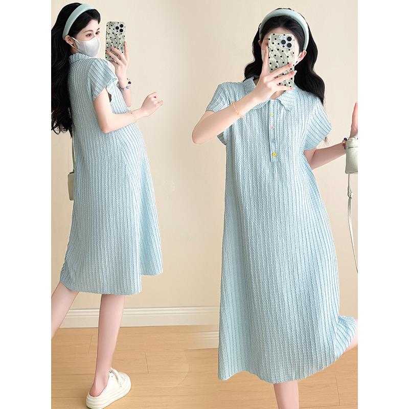 夏季新款时尚清爽冰感短袖翻领孕妇连衣裙中长款显瘦弹力polo长裙