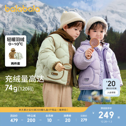 巴拉巴拉童装儿童羽绒服男童女童冬宝宝外套轻薄摇粒绒两件套上衣