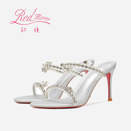 红底透明一字带凉鞋女夏外穿2025新款银色水钻仙女风御姐细跟凉拖
