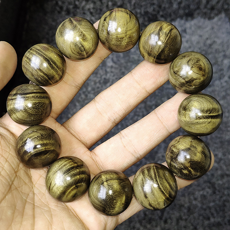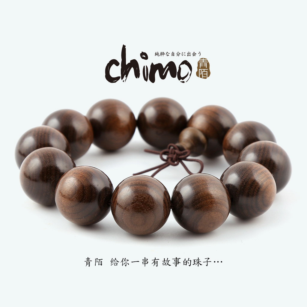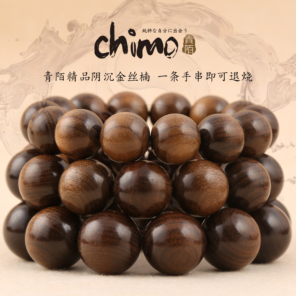 青陌 阴沉金丝楠木纯手工老料 佛珠手串水波纹男女手链乌木文玩