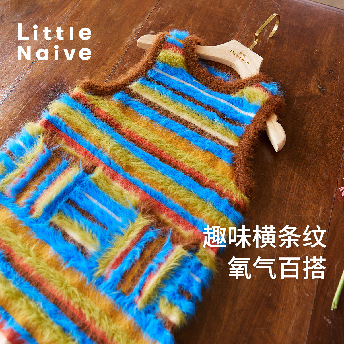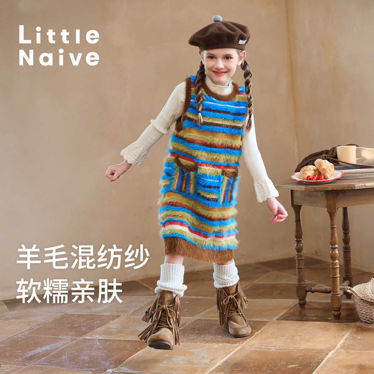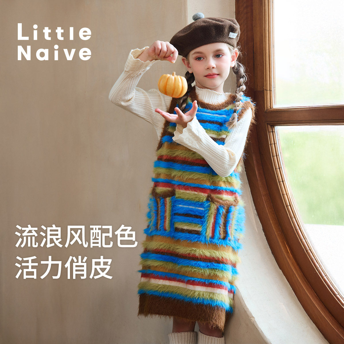 Little Naive女童拼色背心裙冬新款软糯亲肤连衣裙儿童休闲背心裙
