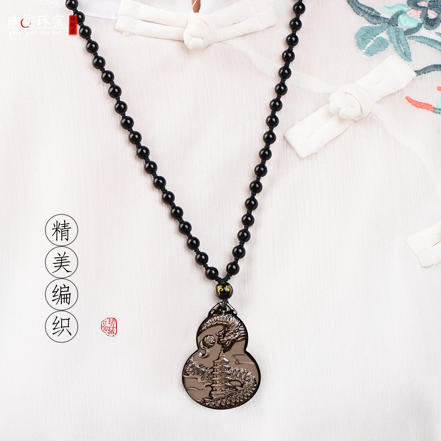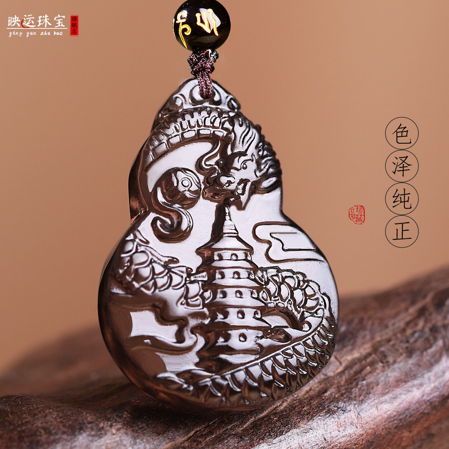 属鼠人佩戴祥龙护塔吉祥宏吊坠2026马年天然黑曜石泰岁饰品钥匙扣