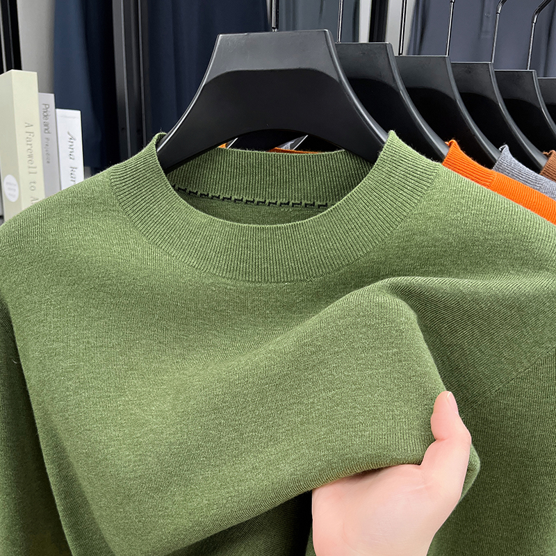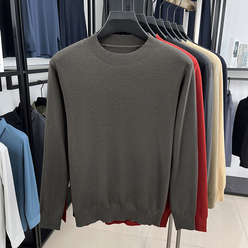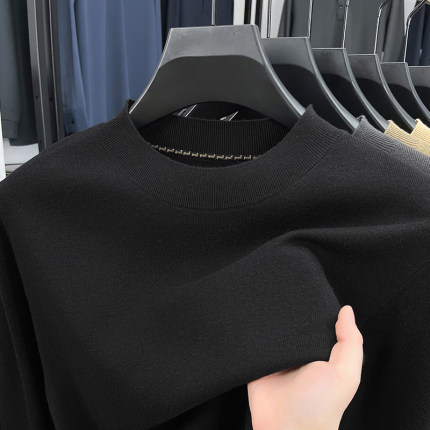 男士秋冬季长袖精仿羊毛针织衫毛衣圆领纯色休闲薄款打底衫T恤男