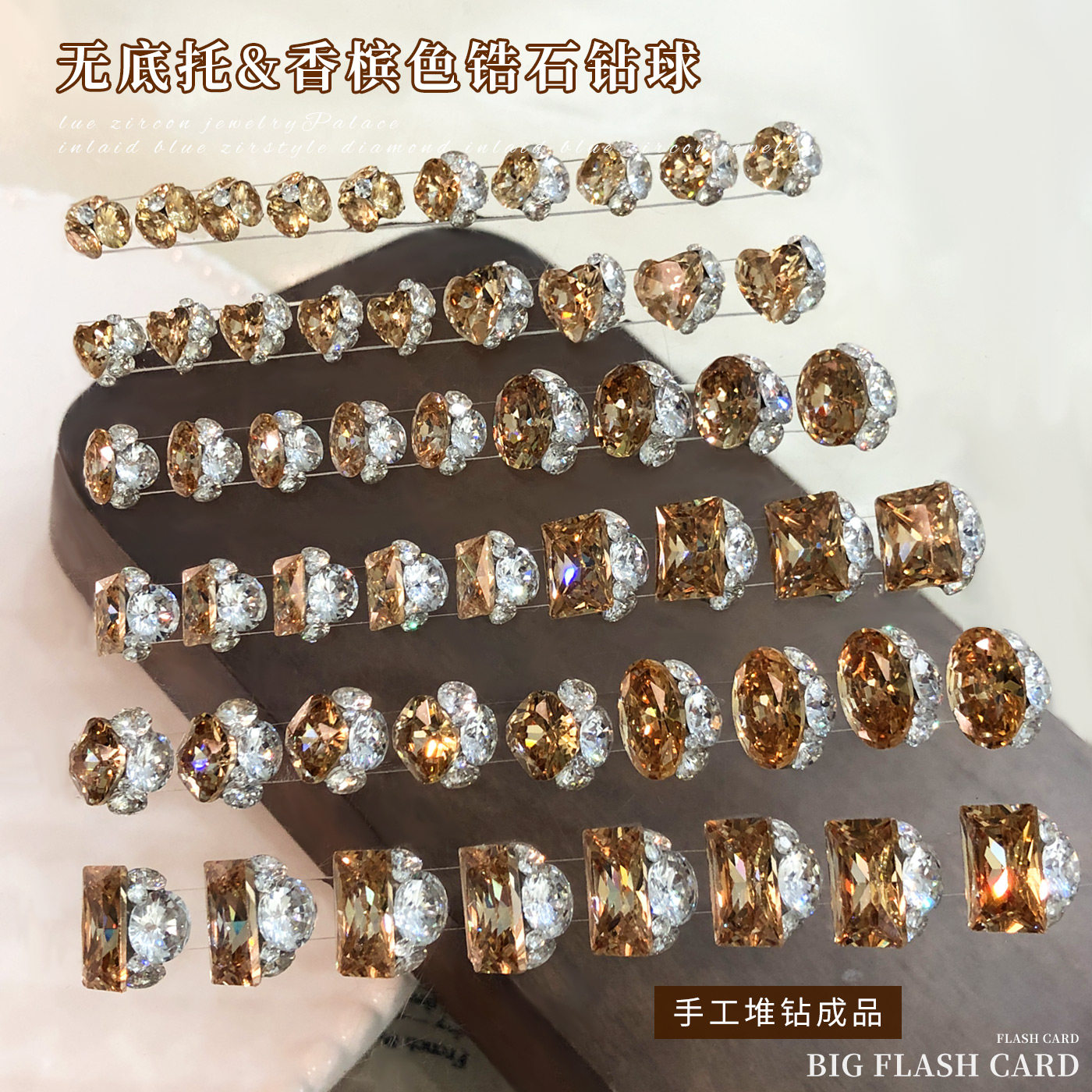 香槟色无底托锆石堆钻美甲饰品爆闪爱心鸽子蛋成品大钻球指甲配饰