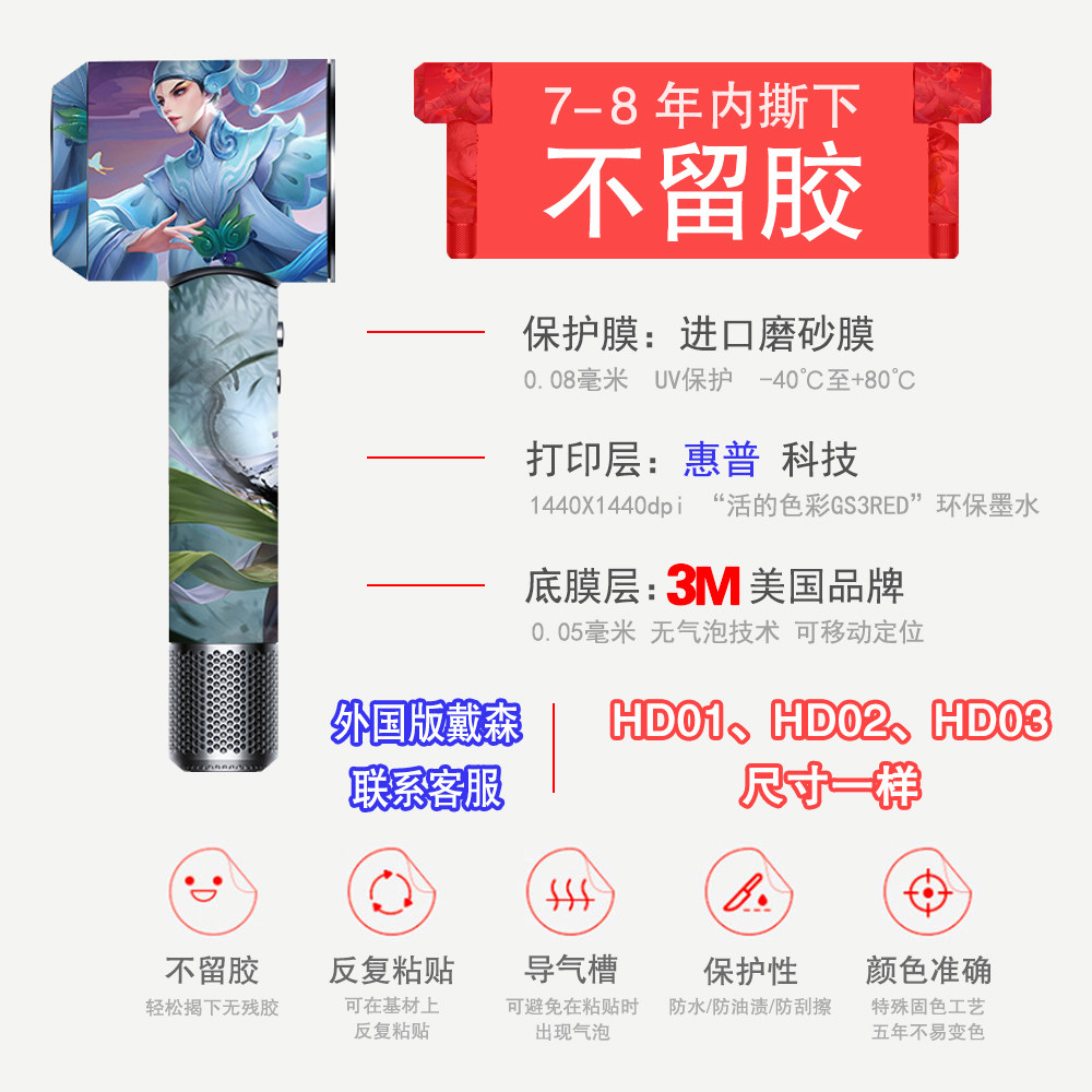 适用于戴森吹风机贴纸hd04专业版沙龙不留胶贴膜国行正版个性定制