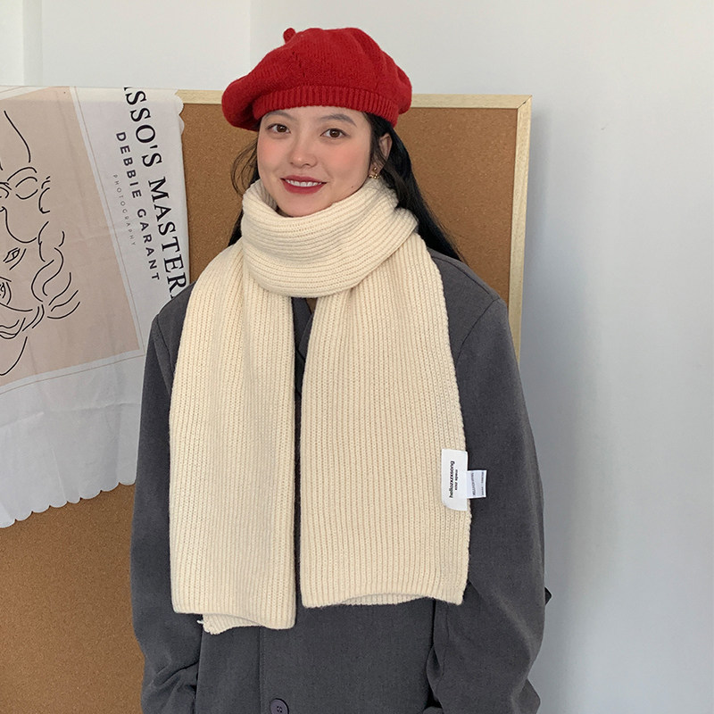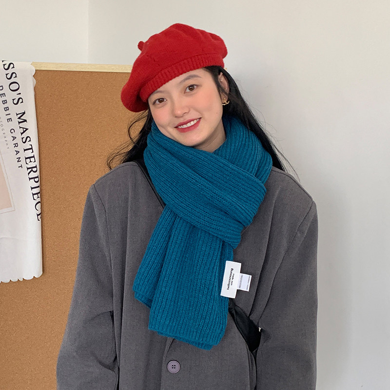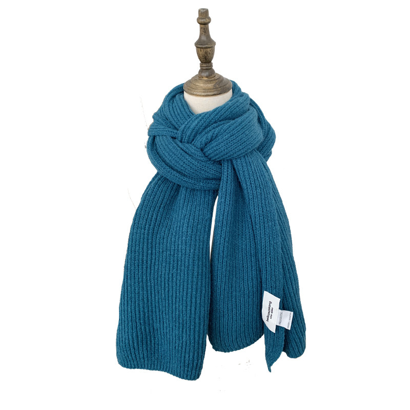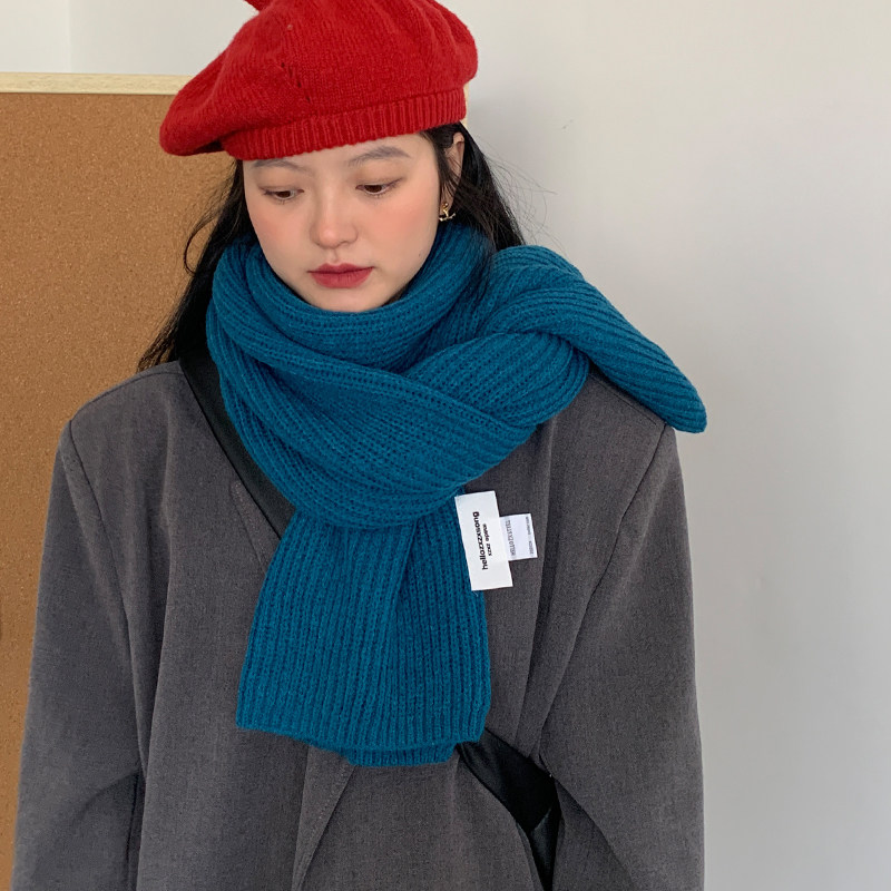 湖蓝针织毛线围巾女2025冬季新款韩版百搭加厚仿羊绒学生保暖围脖