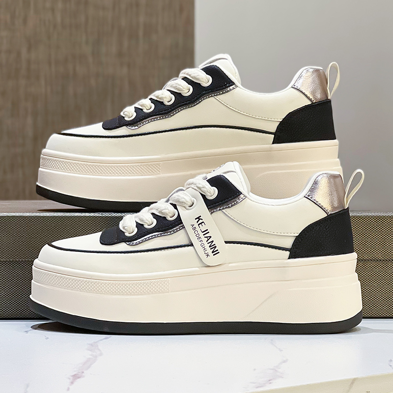 厚底女鞋2025年春季新款松糕鞋时尚百搭真皮休闲鞋圆头增高小白鞋