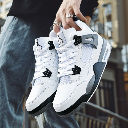 aj4男鞋官网白水泥学生实战训练鞋乔4篮球休闲运动鞋高帮板鞋空军