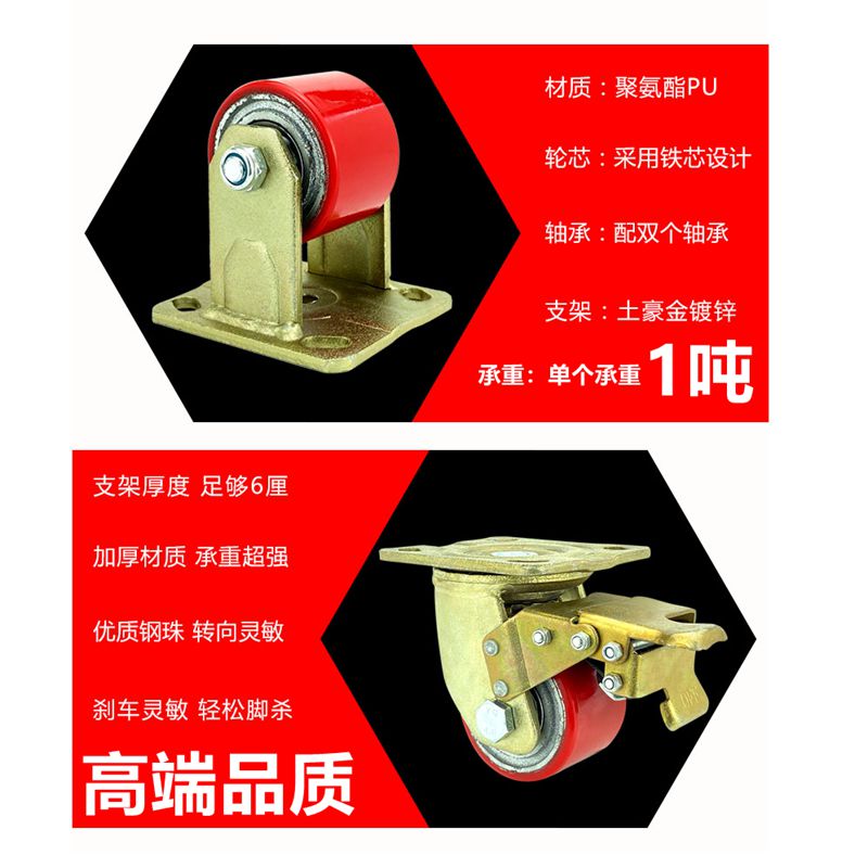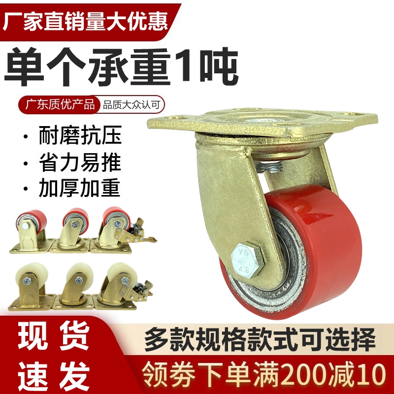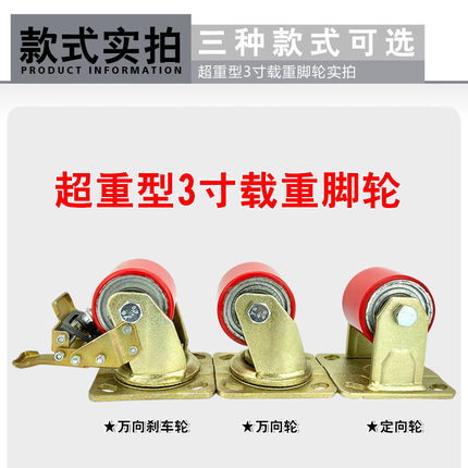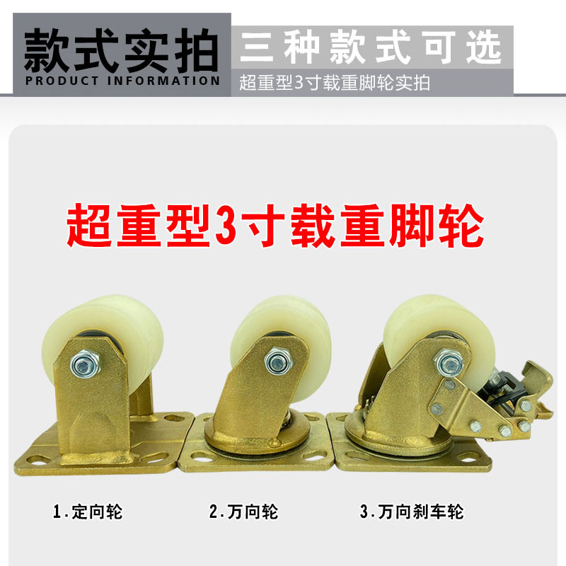 3寸重型低重心脚轮尼龙轮铁芯PU轮大载重聚氨酯万向轮承重1吨轮子