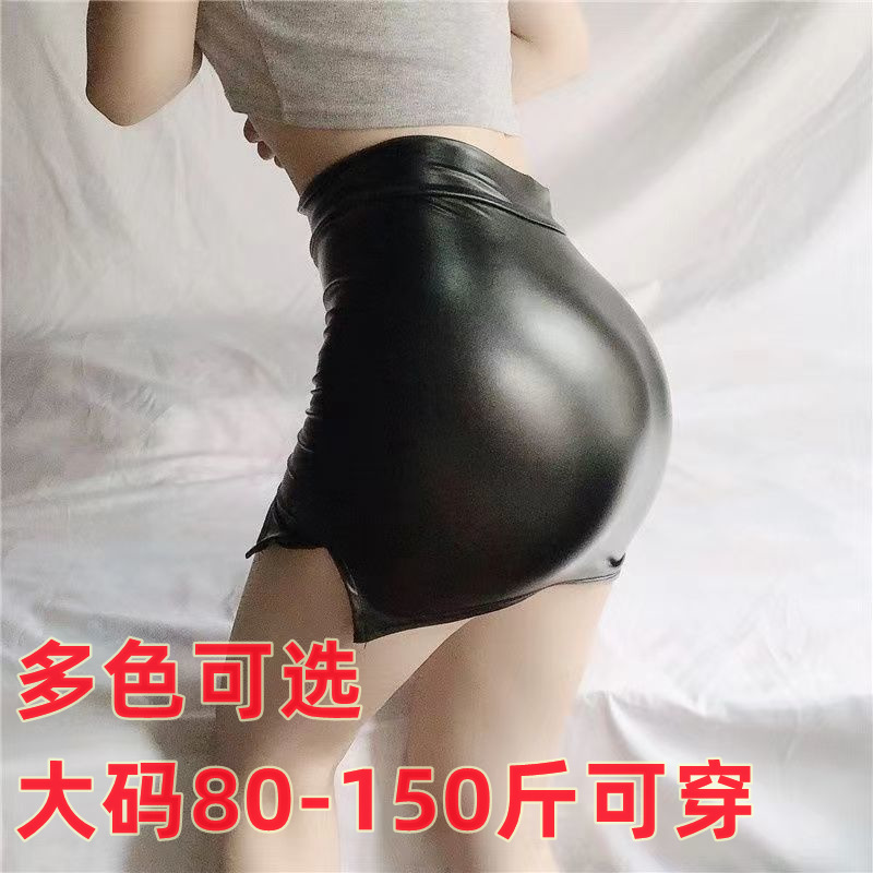 黑皮裙PU裙包臀裙超短裙紧身ol秘书套装性感包殿裙超光短裙秋冬款