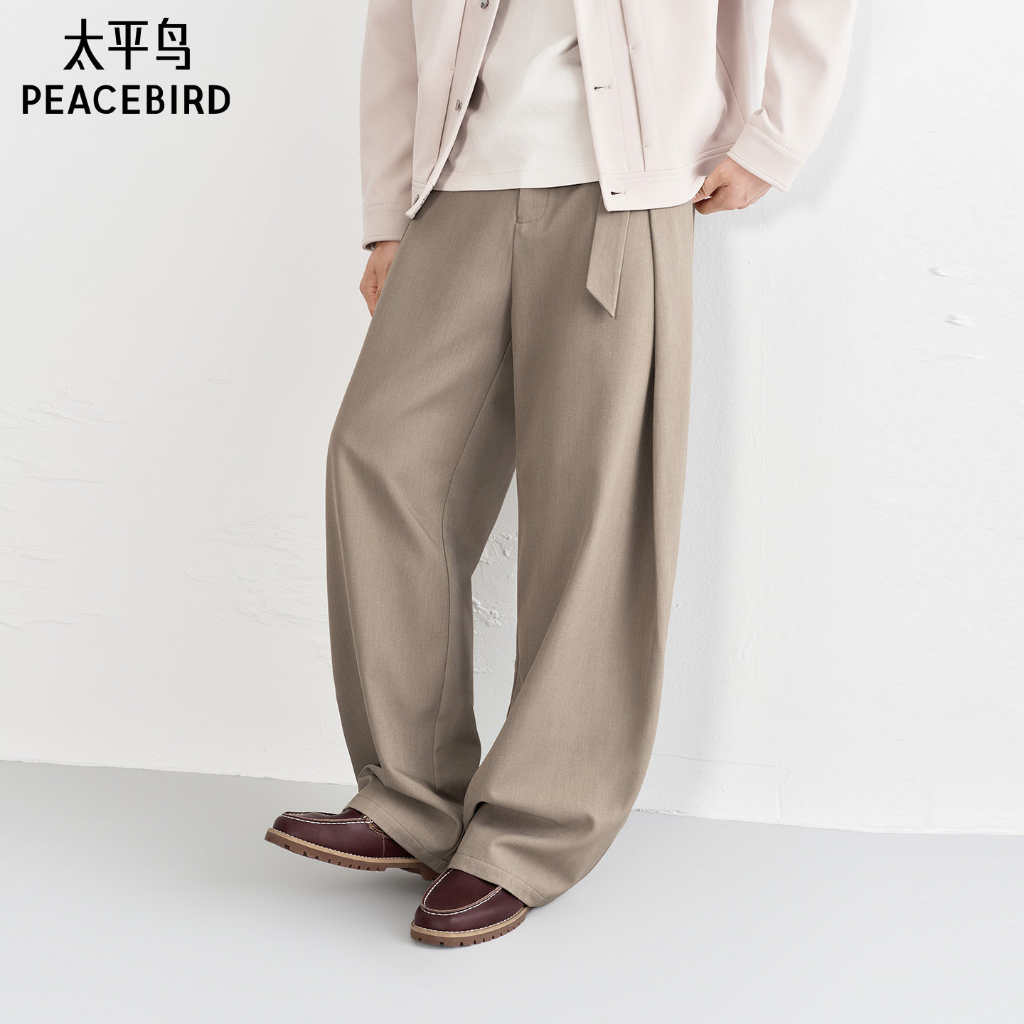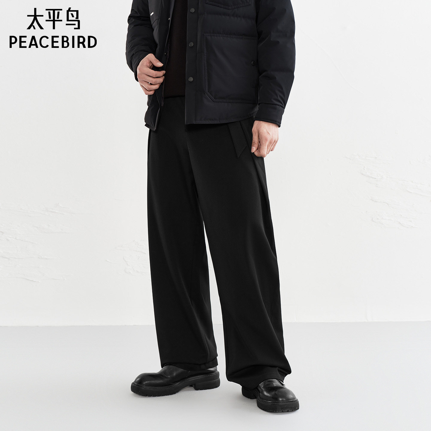 太平鸟男装 衬衫式鹅绒羽绒服冬季保暖外套防寒夹克/直筒休闲裤