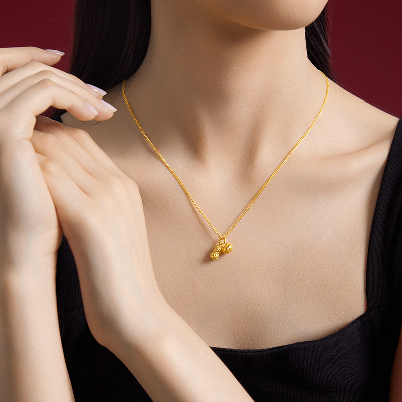 【中国黄金官方店】足金古法好事发生套链时尚简约气质饰品百搭