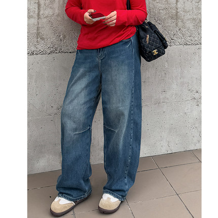 胖mm冬季加绒保暖牛仔裤木子理想大码女宽松高腰牛仔休闲裤子