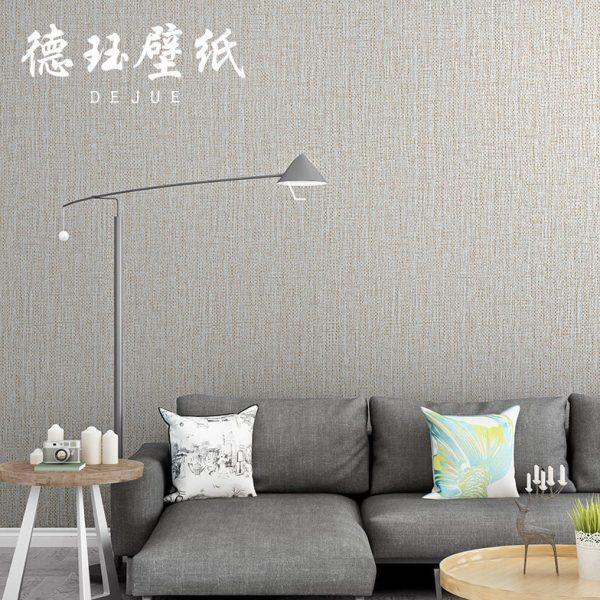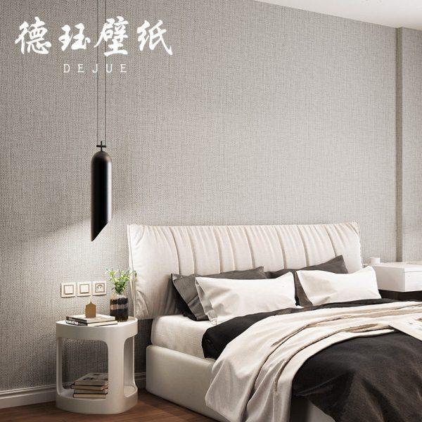 日式亚麻布纹纯色素色浅灰色无纺布墙纸新中式卧室客厅壁纸非自粘