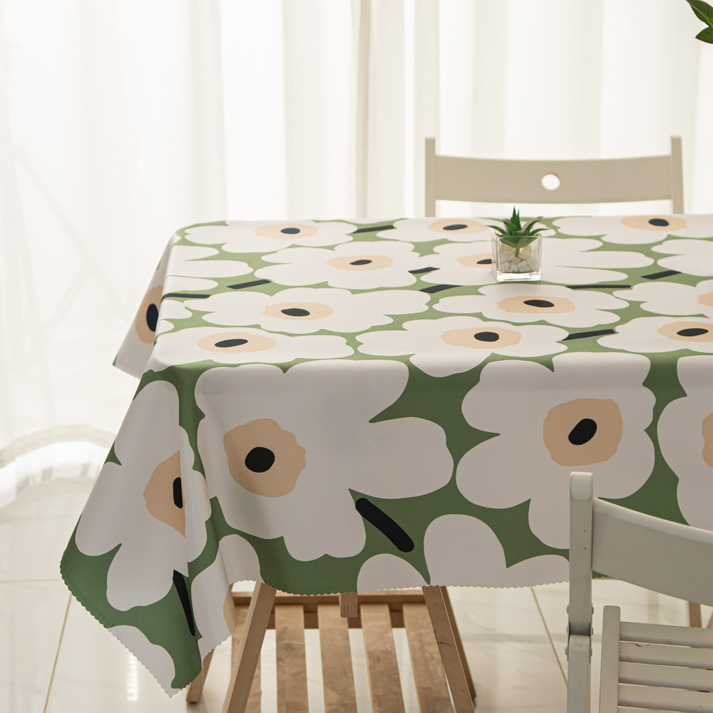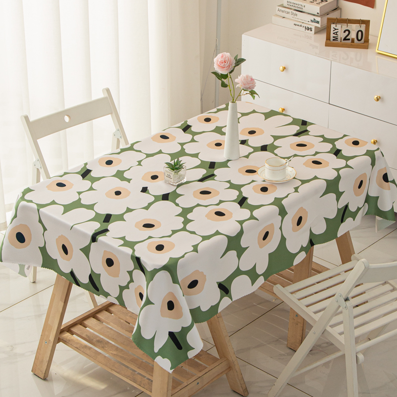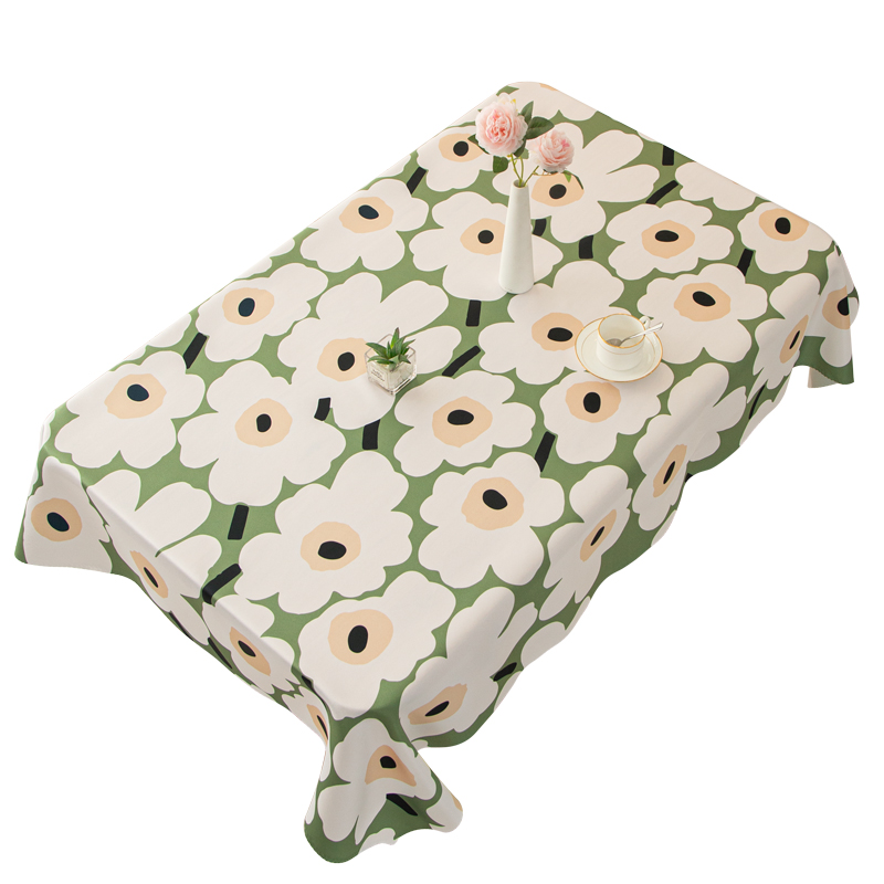 桌布北欧绿白色小清新碎花布艺防水台布餐桌茶几电脑长方形桌桌垫