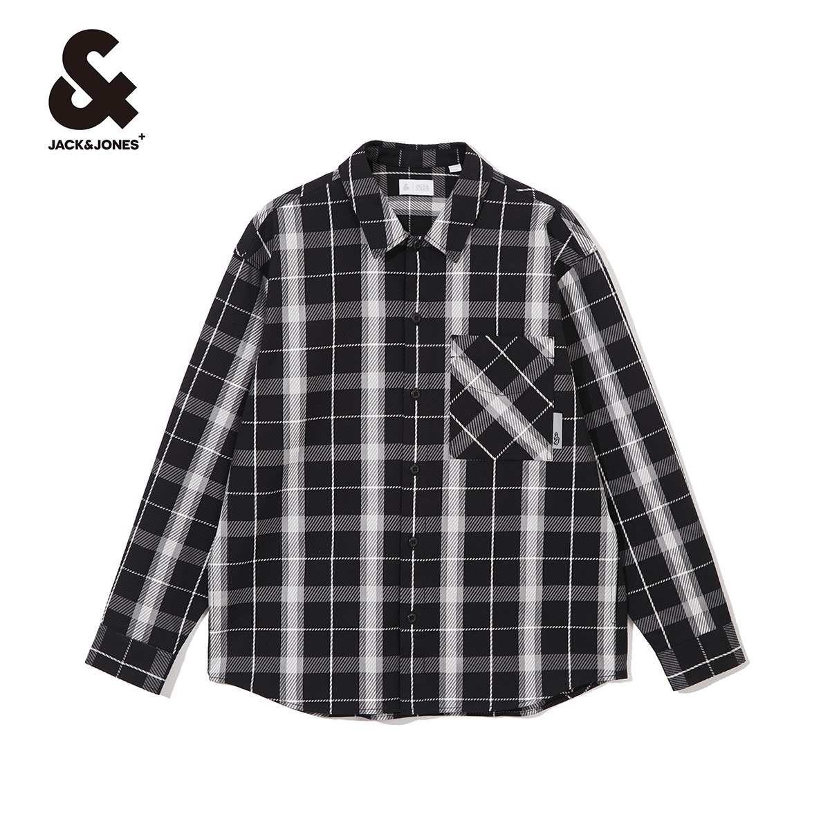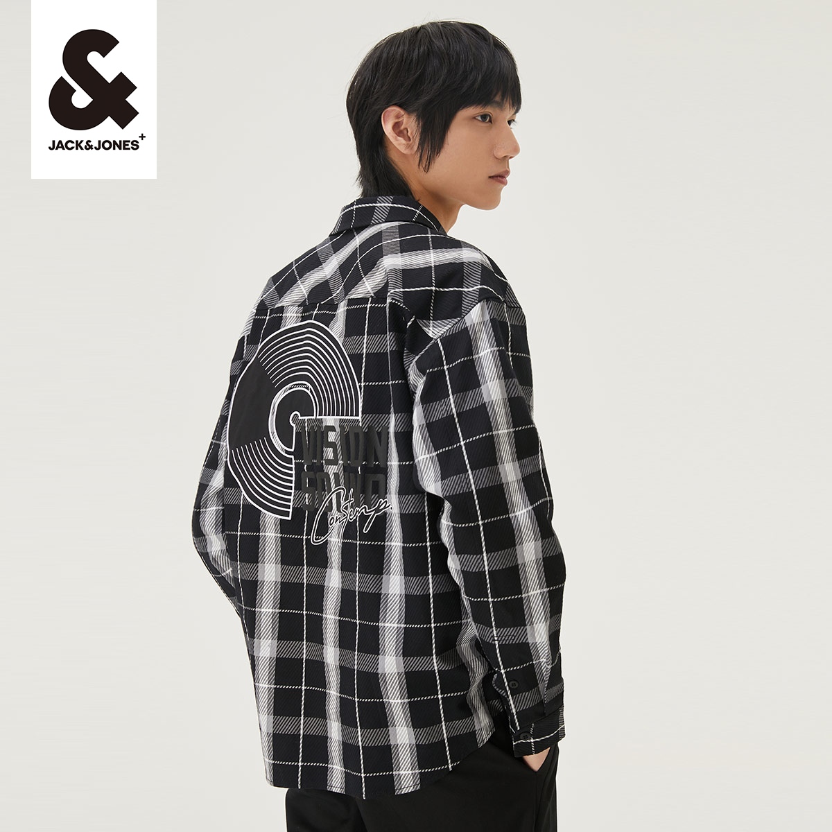 杰克琼斯outlets秋冬舒适休闲条纹格子衬衫男士衬衣长袖上衣男装