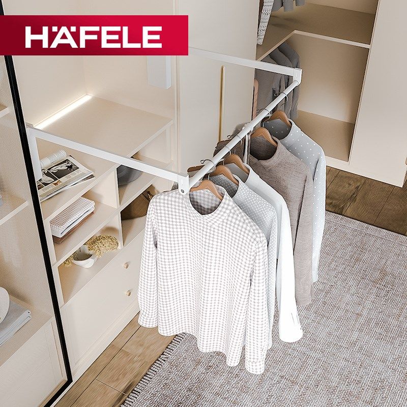 德国海福乐HFELE衣柜下拉衣杆升降挂衣器向缓冲回位挂衣杆