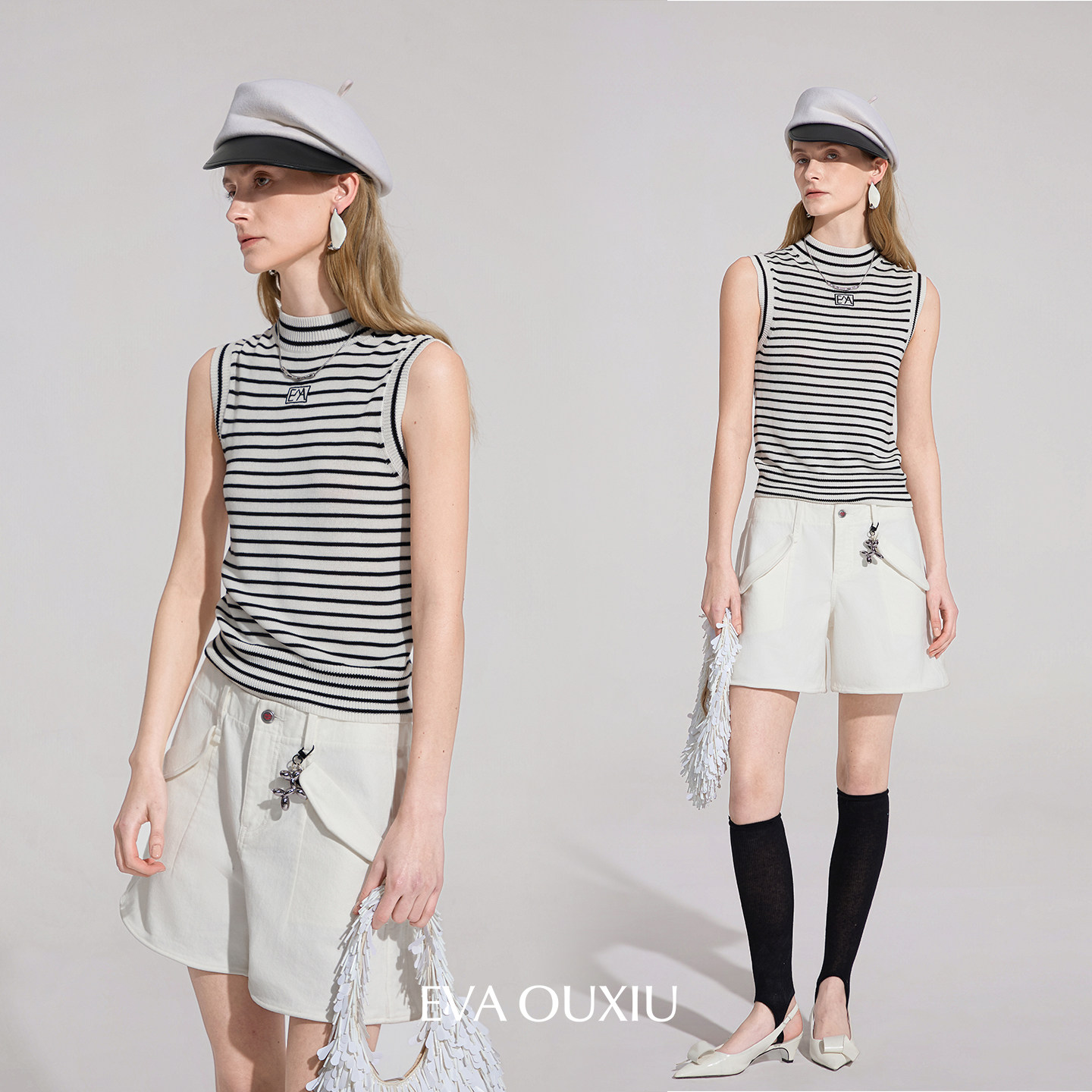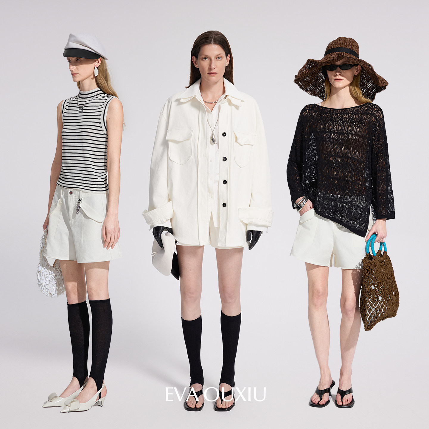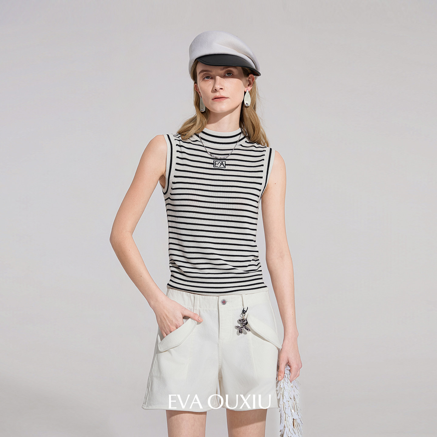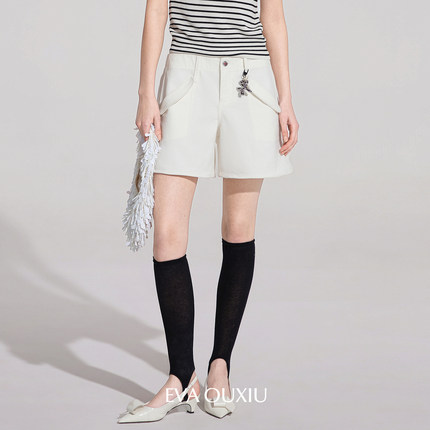 EVAOUXIU牛仔短裤女2026年春商场同款设计感阔腿棉质女士高腰裤子