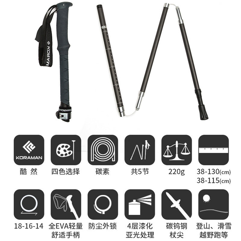酷然折叠户外g登山杖2021新款行山杖超轻防滑直柄徒步登山神器手