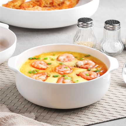 陶瓷蒸蛋羹专用碗家用双耳汤碗宝宝水蒸蛋碗蒸蛋盅辅食蒸碗焗饭碗