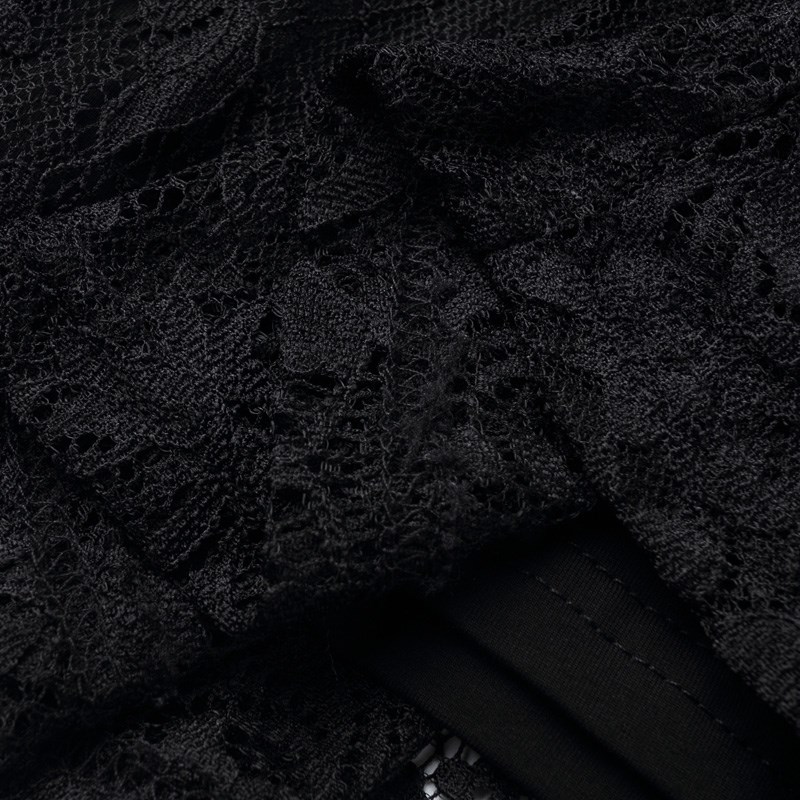 加肥加大码女装黑色t恤女中长款宽松蕾丝打底衫显瘦藏肉高腰上衣