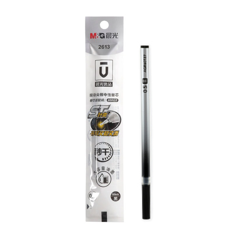 晨光600g5按动式中性晨光按动笔芯360顺滑ST头速干黑色优品0.38/0.5签字水笔心学生批发半针管葫芦头按压替芯