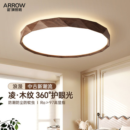 箭牌美学护眼灯简约现代中古风胡桃木纹色吸顶灯书房间灯卧室灯具