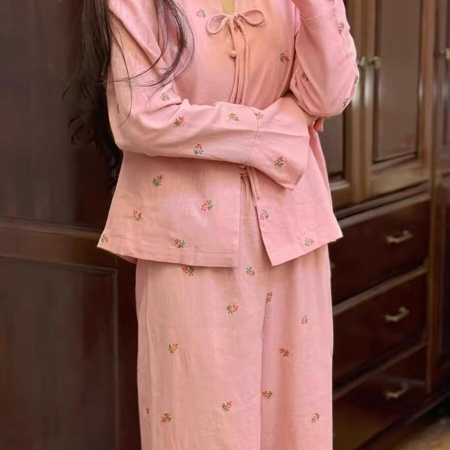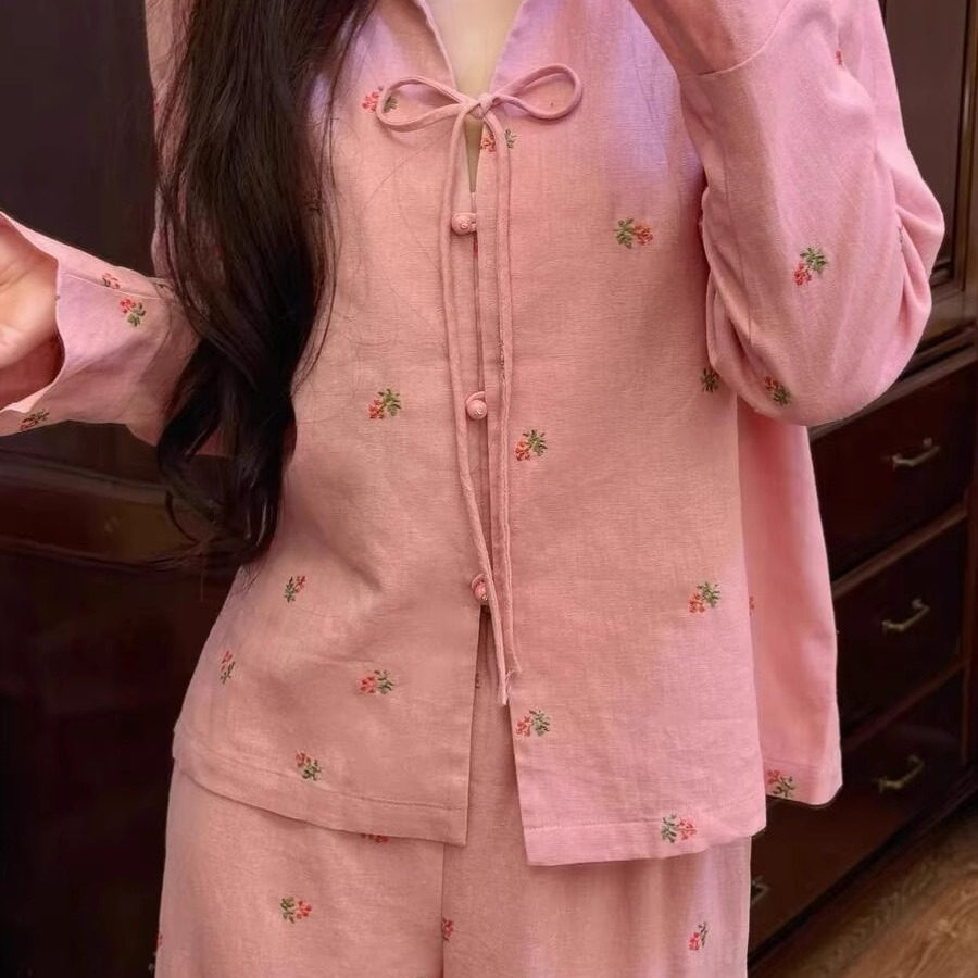 新中式国风睡衣女款春秋碎花开衫