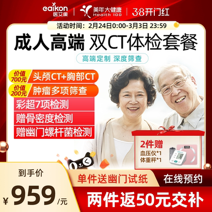 美年大健康体检套餐中老年父母胸部CT头颅CT全身检查全国通用体检