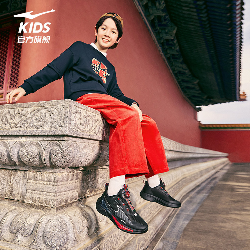 曲速鸿星尔克童鞋新年款红色男童运动鞋中大童跑鞋校园学生跑步鞋