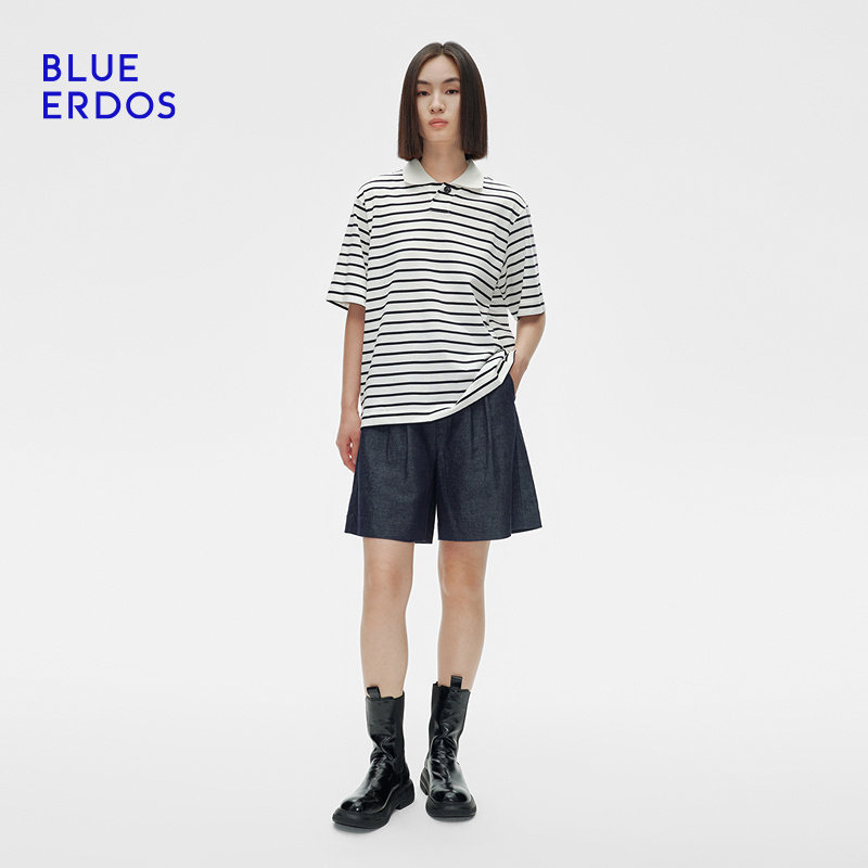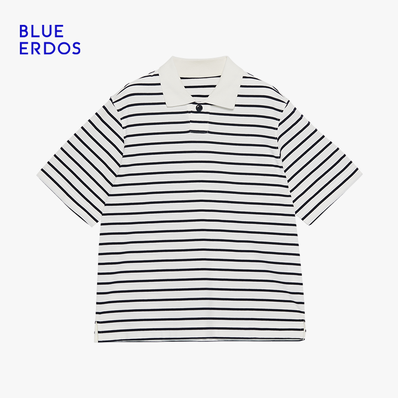 BLUE ERDOS 春夏宽松简约Polo领航海风条纹短袖T恤B555H1002