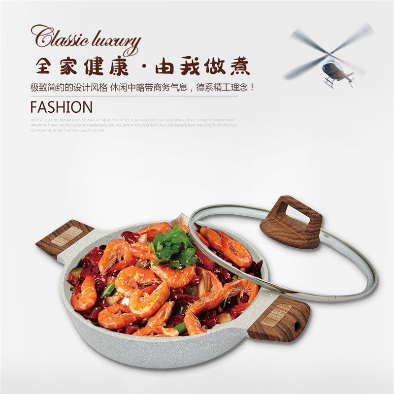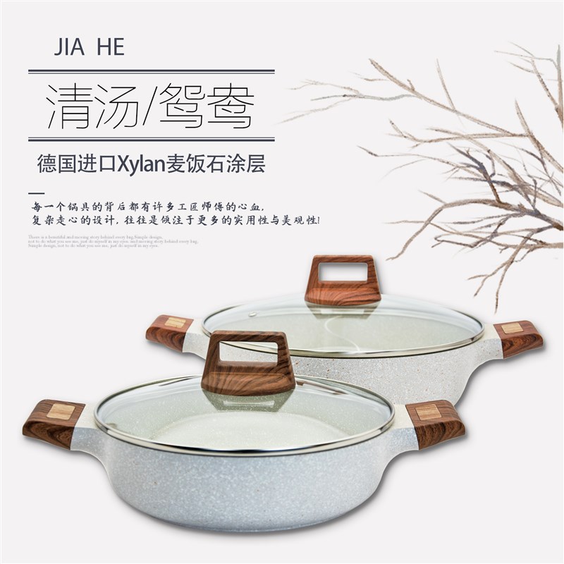 极速麦饭石欧式双耳清汤s火锅锅家用多功能火锅盆不沾电磁炉鸳鸯