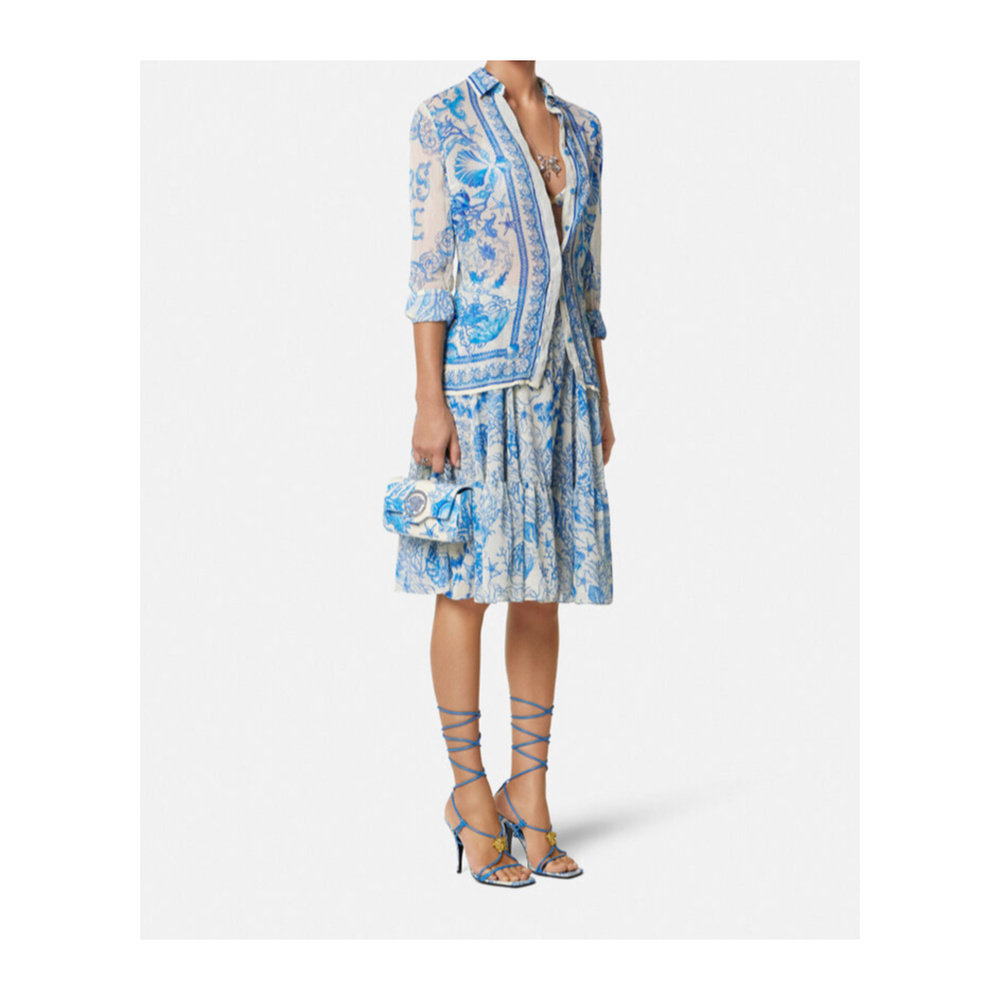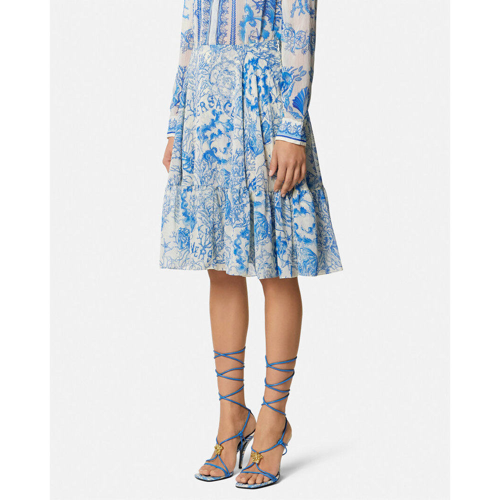 1h可退 香港直邮Versace Underwater Barocco绉纱飘逸迷笛半身裙