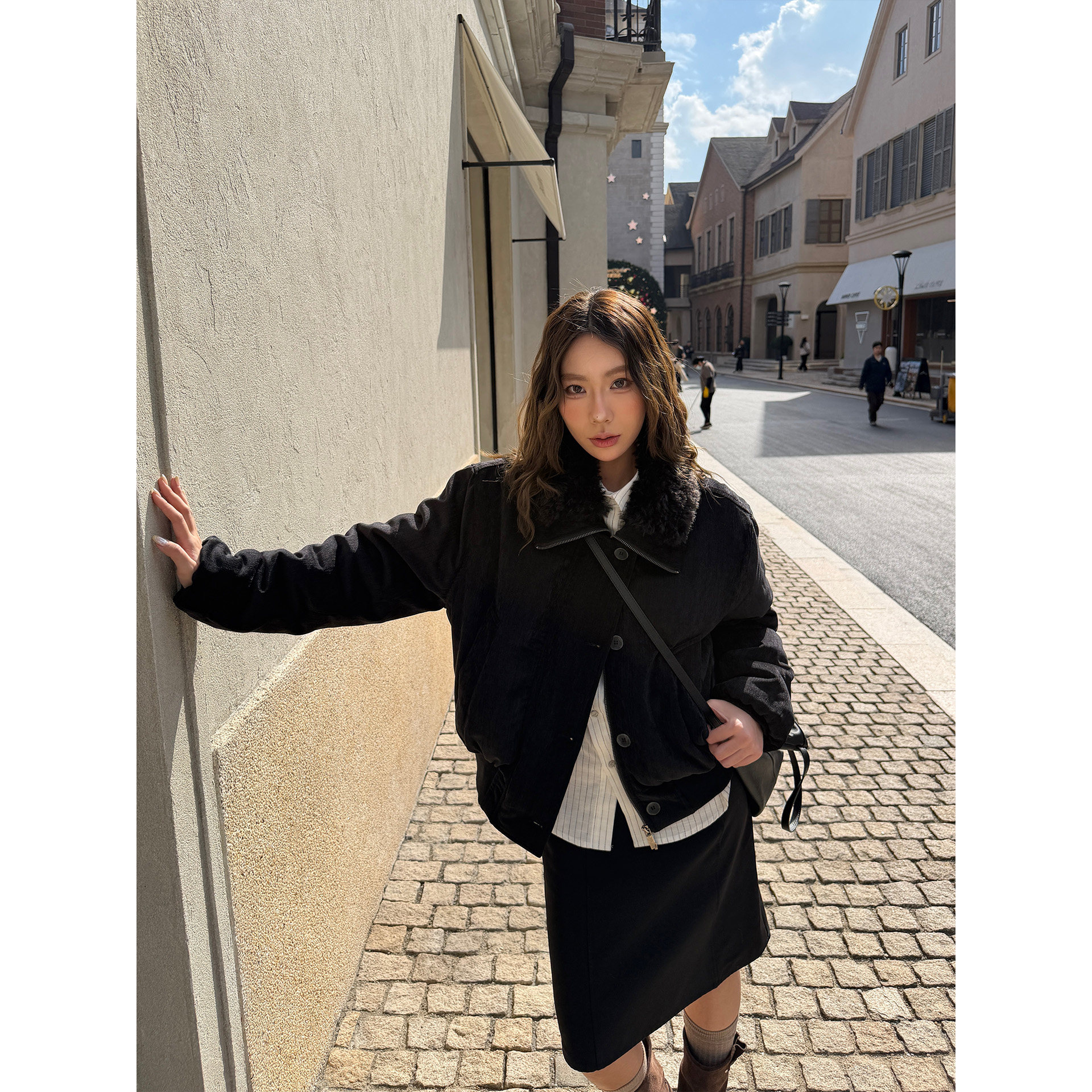 H1c 雪夜*翻领毛领雪尼尔廓形短款棉服外套 力量廓形/优雅氛围
