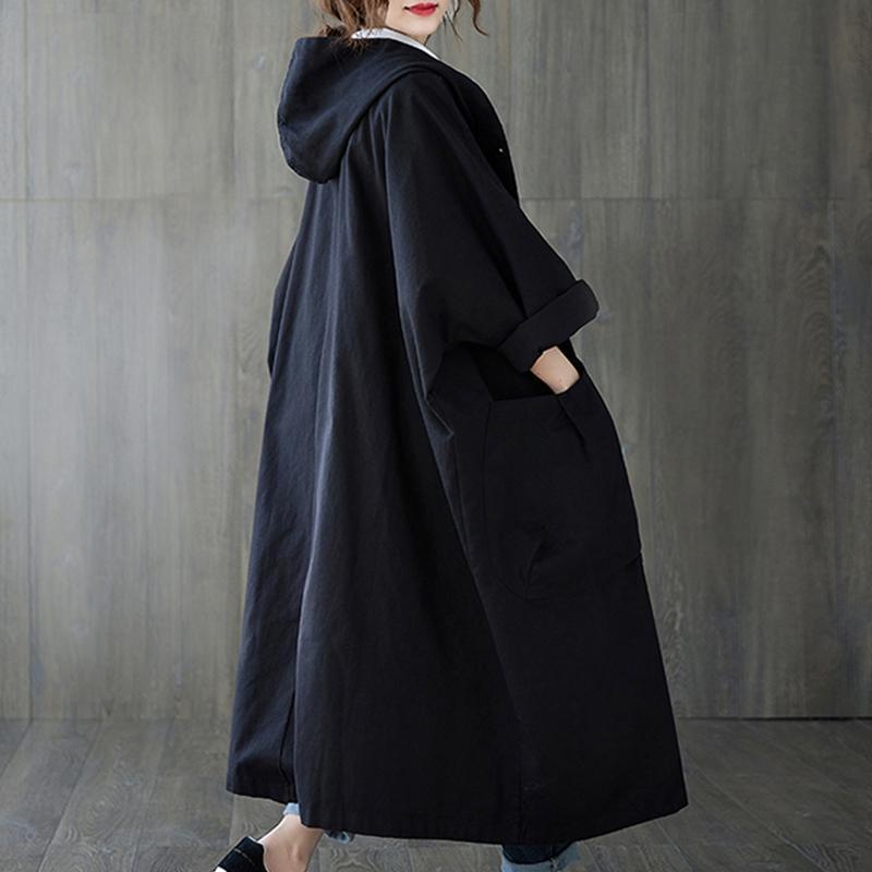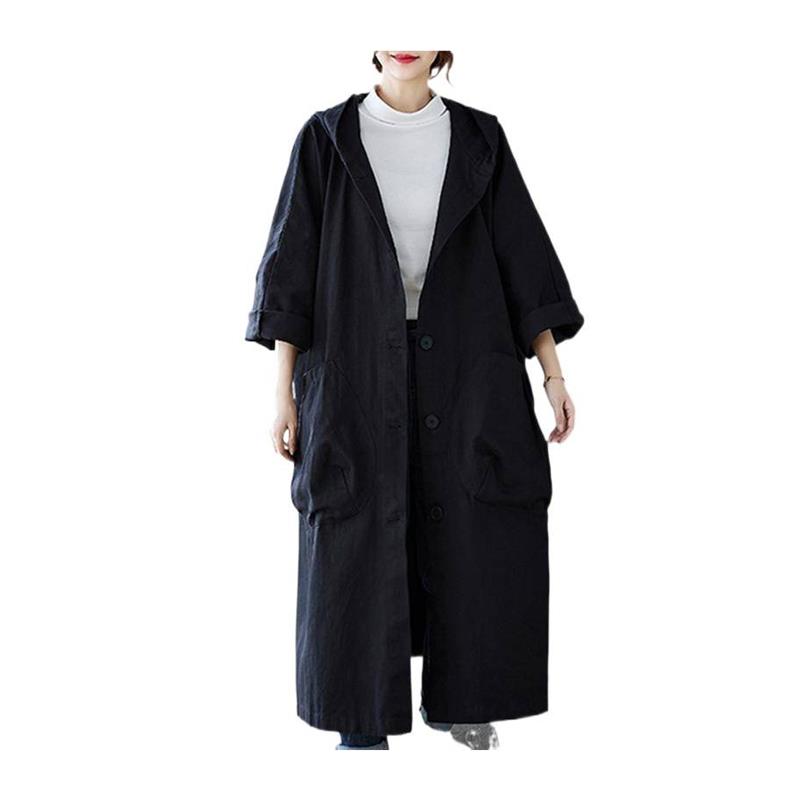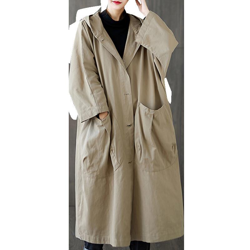 春秋款女装新款宽松大码女装长款风衣女中长款外套女连帽休闲百搭