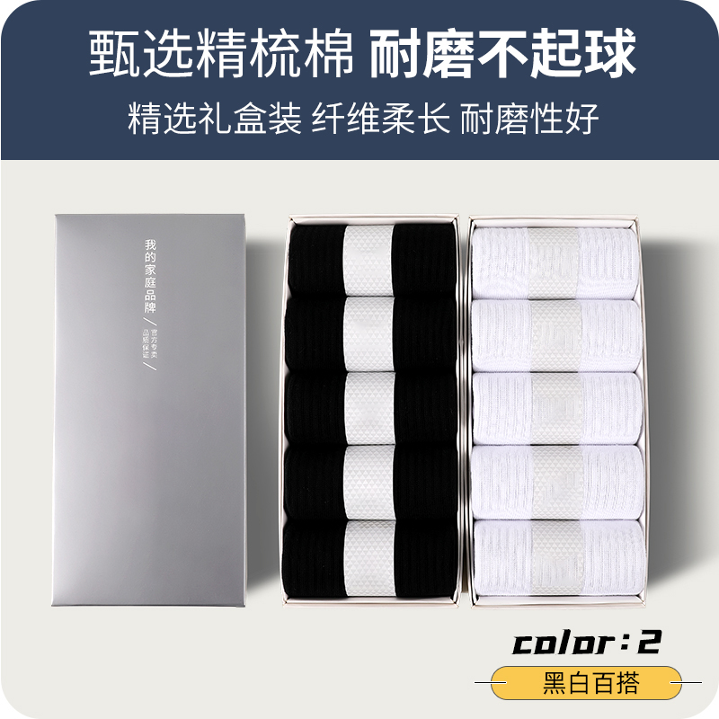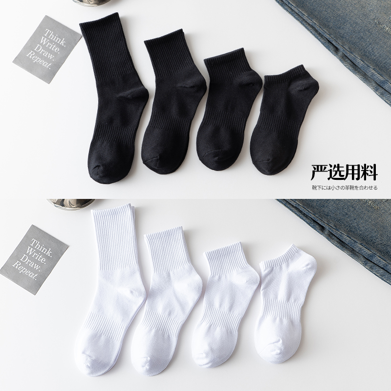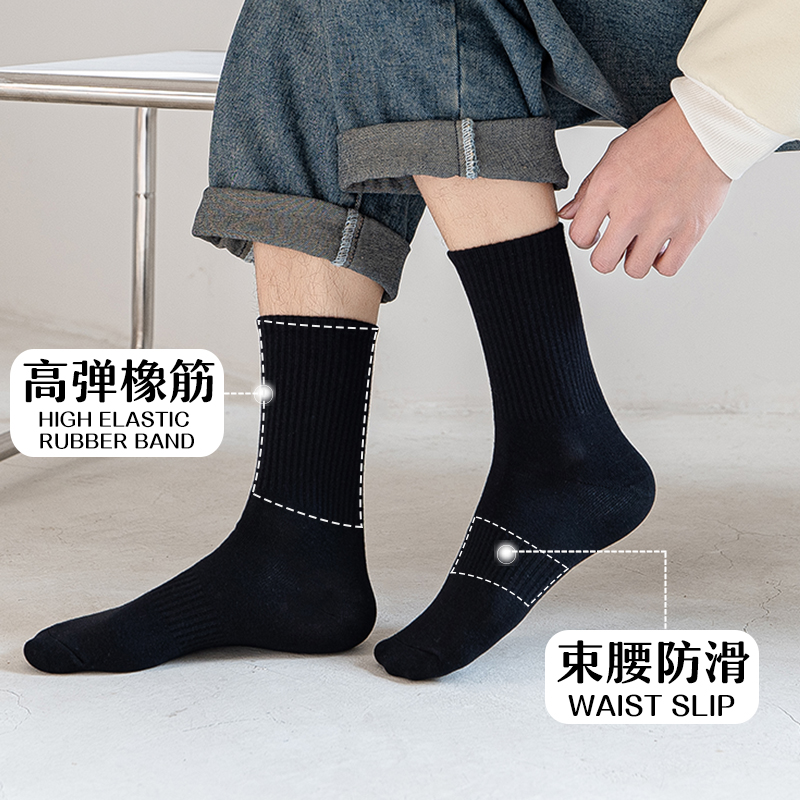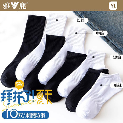 雅鹿袜子男短筒袜纯黑白棉袜防臭透气吸汗运动防滑束腰船袜情侣