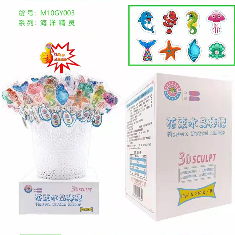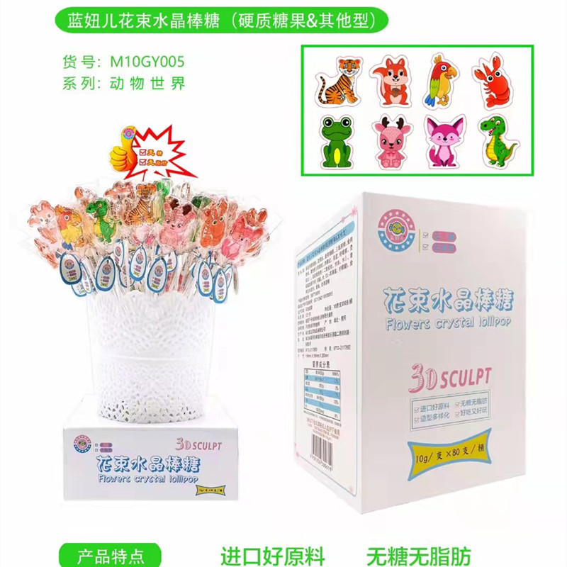 无蔗糖卡通动物水晶长棒棒糖花束创意水果高颜值糖果儿童小礼物