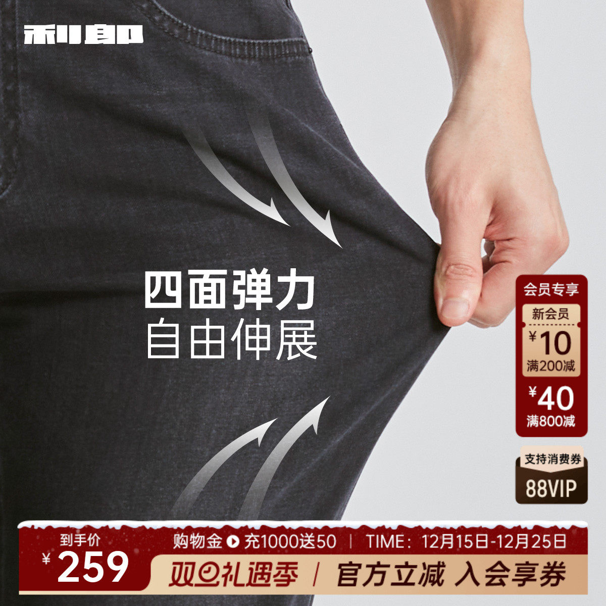 【空调牛仔】利郎官方凉感牛仔裤男2025夏季新款薄款裤子男裤男装