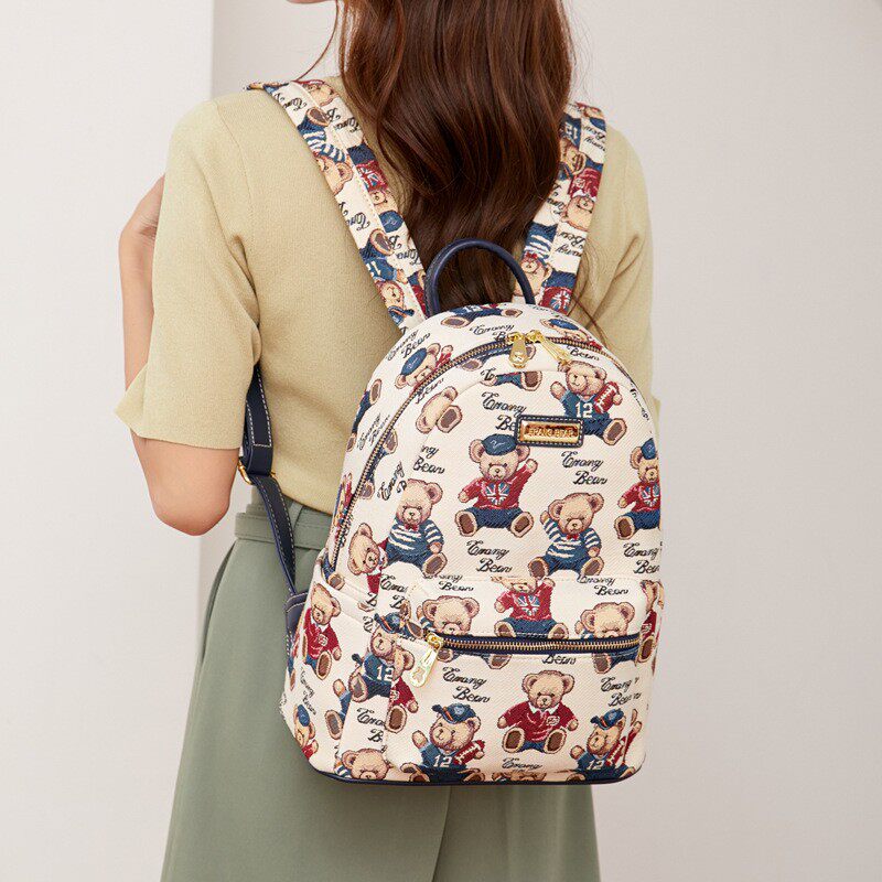 小熊依恋双肩包女生帆布可爱小背包韩版百搭休闲学院风维尼旅行包