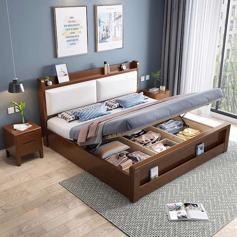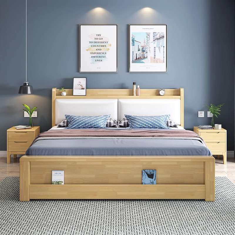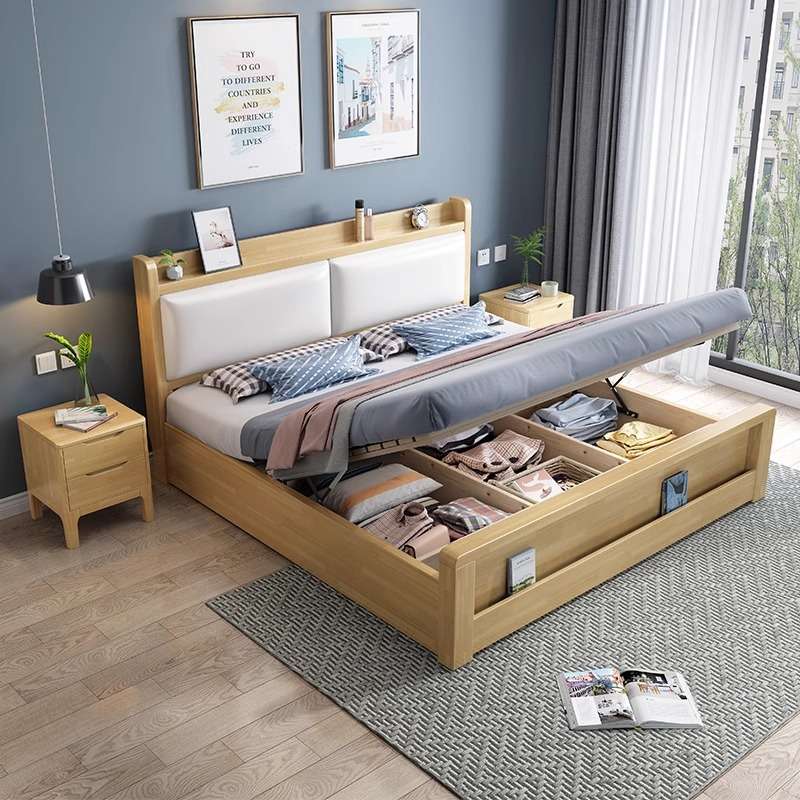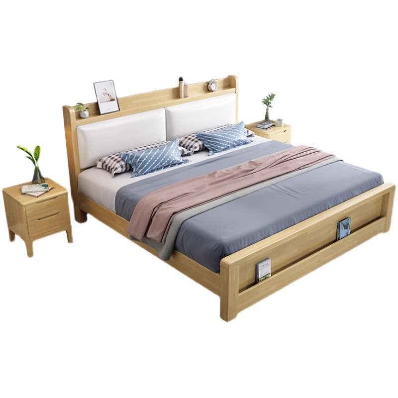 北欧实木床现代简约主卧1.8米软靠双人床1.5米经济型高箱储物床