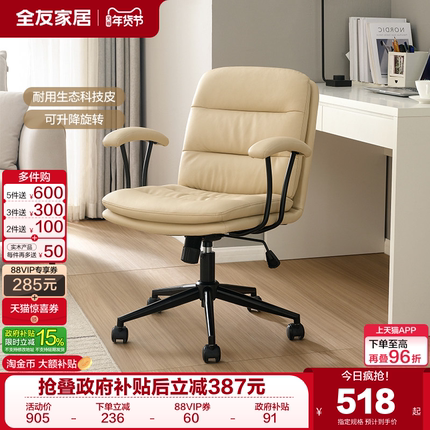 全友家居可升降旋转书椅书房电脑椅软包靠背万向滑轮办公椅家具