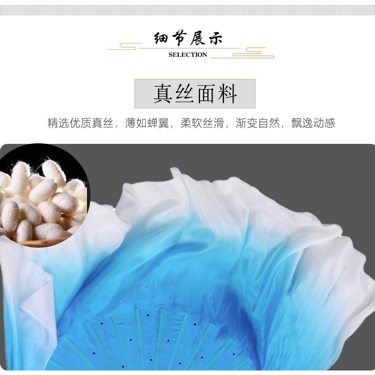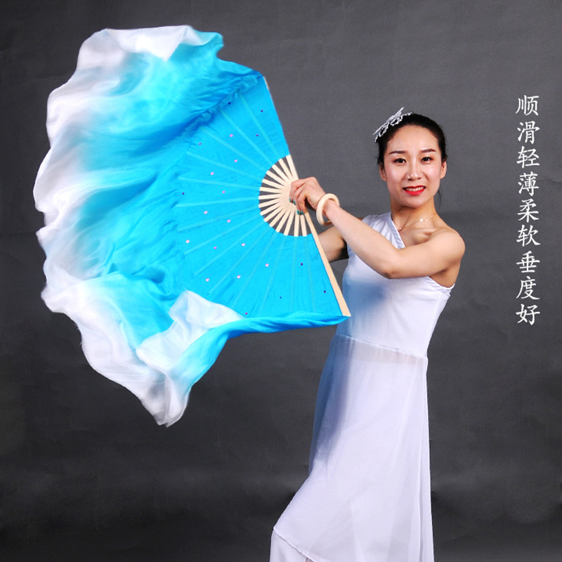 湖蓝渐变真丝舞蹈扇心灯胶州秧歌古典舞扇双面跳舞表演考级扇丝巾
