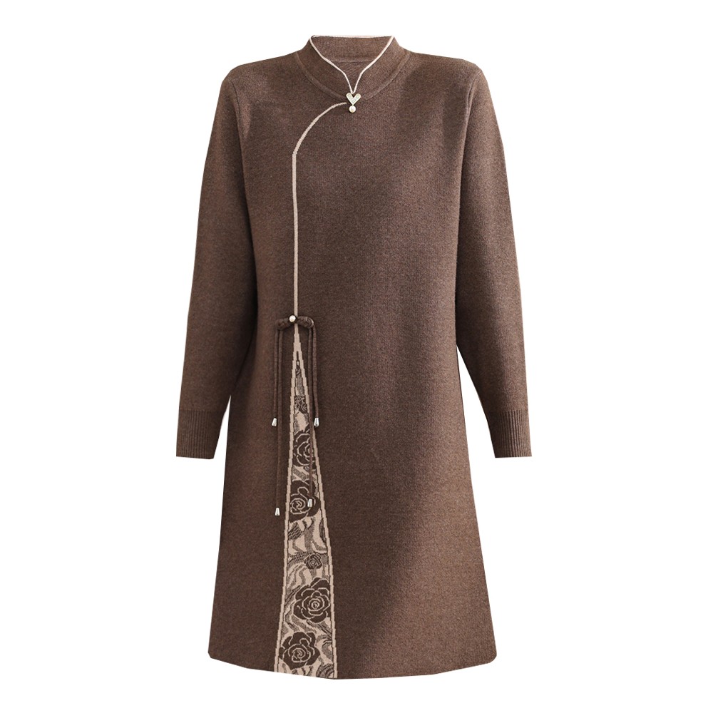 喜卉妈妈秋装针织连衣裙2025新款洋气中老年女装国风毛衣中长裙子