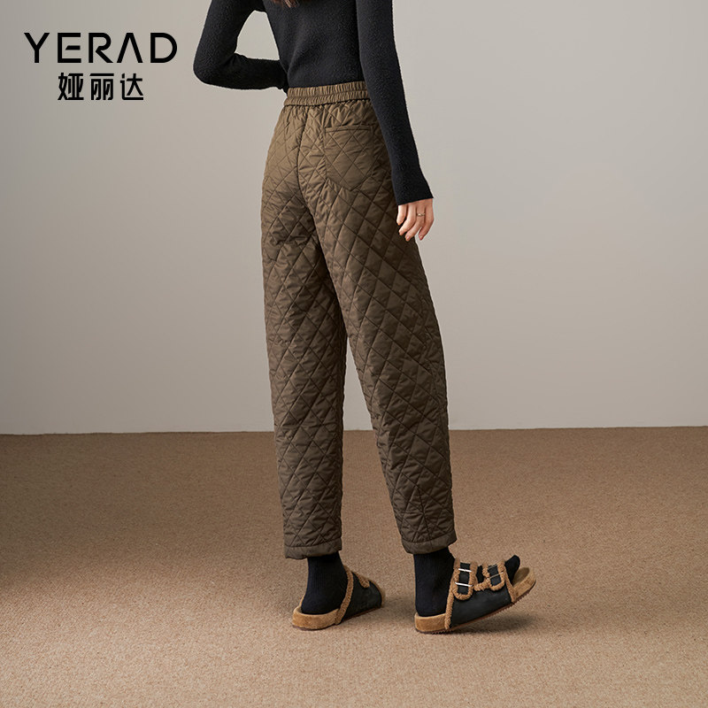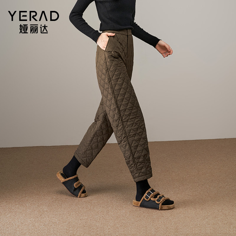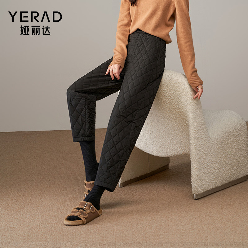 娅丽达加厚棉裤哈伦裤女冬季休闲裤2025新款裤子时尚镰刀裤保暖裤