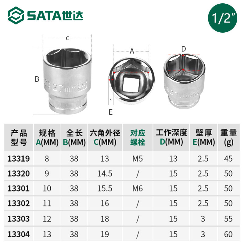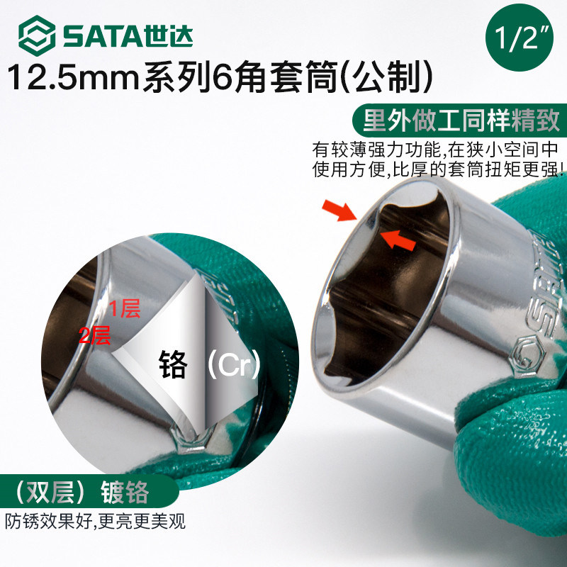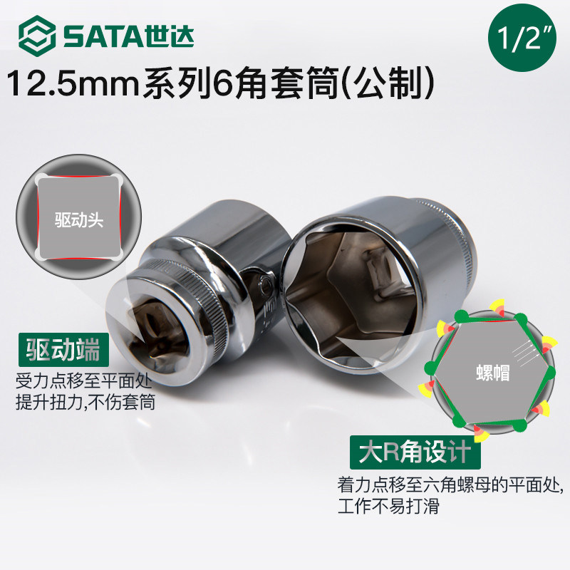 世达大飞短套筒头1/2外六角棘轮扳手套筒8-32mm汽修维修五金工具